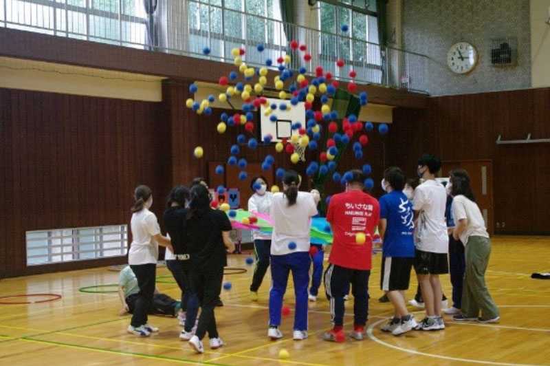 前回経験した「事例を想定した運動あそび作り」を土台に、今回はより発展的な研修内容を繰り広げました。学生さんの発想豊かな活動記録です。